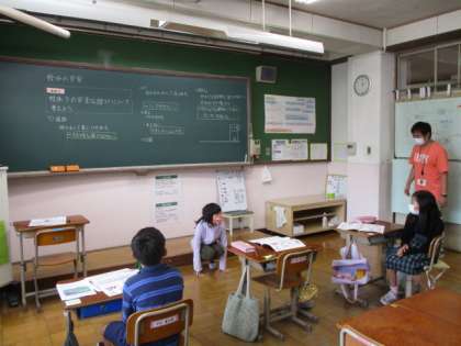 3年生は,国語で今日の間伐体験についての作文に取り組んでいました。はじめ・中・終わりを意識しながら,どんなことが頑張れたのかを書いていました。4年生は,学活で校外の安全についての学習でした。安全に遊ぶために気をつけるべきことをみんなで考えていました。6年生は,家庭科で夏をすずしくさわやかにの学習でした。自分の靴下を手洗いできれいにしていました。