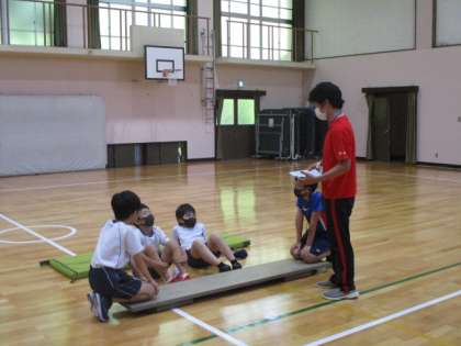 3年生は,算数で復習問題に取り組んでいました。一問ずつじっくりと考えていきながら,2人で丁寧に答え合わせをしていました。4年生は,図書室で本を探していました。読書感想文を書くために,どんな本がいいのかじっくりと探していました。6年生は,体育館で上体起こしをしていました。果たして,みんな何回できたのか気になるところです。