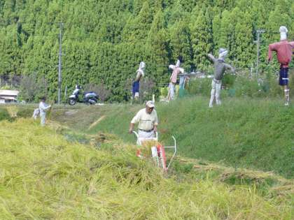 端がかれたらコンバインでもう少しスペースを広げました。26日が児童の稲刈りです。
