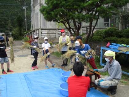 今回も,保護者の方が子どもたちの様子を見に来てくださり,ありがとうございました。苗作りから始まり無事に脱穀までたどり着きました。ラ・フォレSHIZUとして最後となる活動もきっと充実したものになると思っています。また,引き続きラ・フォレSHIZUの一員として頑張る子どもたちの様子を温かく見守っていただきますようお願いいたします。