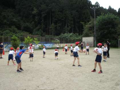 今日の2・3校時に,サンガつながり隊が静原小学校に来られました。今回は全児童が参加し,コーチと一緒にグループづくりやボールを使った遊び,パスやミニゲームなどを楽しみました。今年度で閉校する本校にとって,今回のサンガつながり隊は子どもたちの思い出の1つになったのではと思っています。
