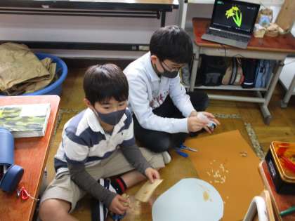 総合的な学習の時間では,それぞれ売る物の担当に分かれて準備をしています。