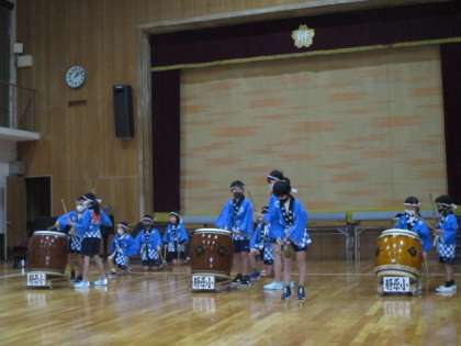 明日は学習発表会なので,今日の昼休みに和太鼓のリハーサルを行いました。みんな本番用の法被に着替え,当日さながらの気持ちで臨んでいました。明日は,きっとすばらしい伝承太鼓を披露できると思っています。