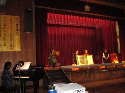 学校運営協議会読書活動部会のみなさんによる読み聞かせ「でんでんむしのかなしみ」の様子です。読書活動部会のみなさん,本日はありがとうございました。