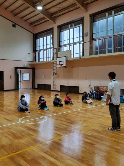 少し天気が心配ですが、予定通り京北山国の家にむけて出発しました。写真は出発式の様子です。