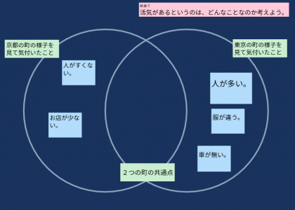 今日の社会科の学習では,「活気」と「工事の予想」について,ロイロノートを利用して学習しました。