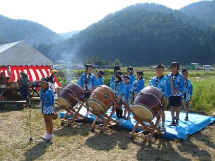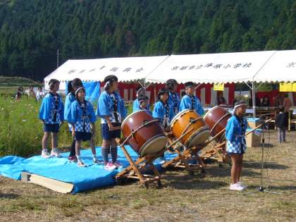 オープニング。メイン会場で,静原伝承太鼓を披露しました。