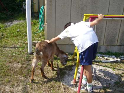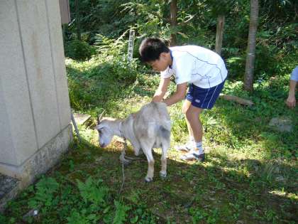 ヤギも学校に来ました。