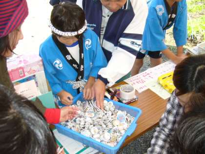 キャラクターの絵を描いたのを缶バッチにしていただきました。バッチをつけてコスモス祭りへ!