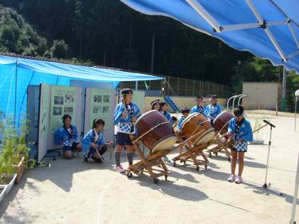 学校会場ででの発表です。太鼓演奏をしました。