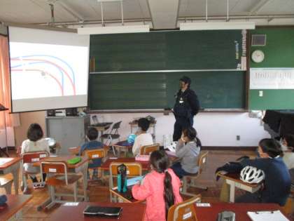 今日の5・6校時に,全児童を対象とした自転車教室を行いました。下鴨警察署の方にお世話になりながら1〜3年生と4・6年生のグループに分かれて,安全講話を聞いたり自転車の実技指導を受けたりしました。4・6年生は,実技の後に筆記テストもあったので結果がどうなのか気になるのではと思っています。