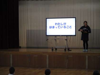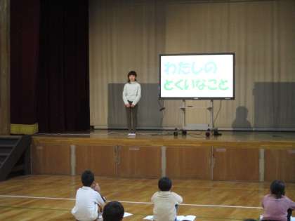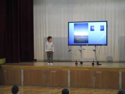 今日の1校時に,第3回静原タイムを行いました。今回も3人の子どもたちが発表しましたが,それぞれ自分が得意にしていることや夢中になっていることなどを話しました。学習発表会後ということもあってか,3人ともしっかりと伝えることができたように思いました。また,他の子どもたちも静かに聞くだけでなく,中にはメモを取っている姿も見られました。各発表後も子どもたちは感想や意見を積極的に話していたので,今回の静原タイムも充実していたのではと思いました。