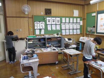 3・4・6年生は,総合的な学習の時間でラ・フォレSHIZUの活動に取り組んでいました。木材を丁寧に磨いたり商品づくりのデザインを考えたりしていました。また,静原の朝市以外にもどこかで出店できないかとタブレット端末で調べている様子も見られました。