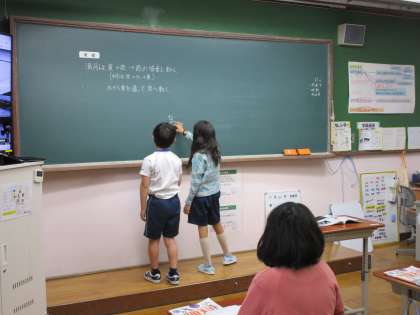 理科の学習では,満月の動きについて先週観察してきた結果をもとに考察を考えました。考察を書いた後,前回の半月との違いについて一生懸命説明していました。