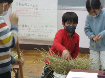 今日は,しめ縄づくりに備えてわらのはかまとりをしました。