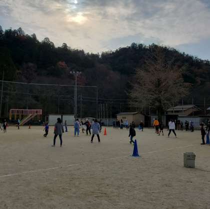 12月12日(日)に市原野小学校にて親子で遊ぼう会が行われました。みんなでこおりおにを楽しむイベントで,本校からも児童ならびに保護者の方が参加されていました。運動場を4つのエリアに分けて,低学年対高学年,高学年対保護者全員などいろいろな組み合わせで実施され,みんなとても楽しそうに走っていました。
