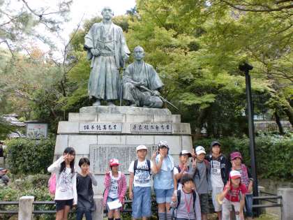 円山公園には、坂本龍馬と中岡慎太郎の像がありました。