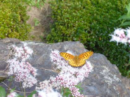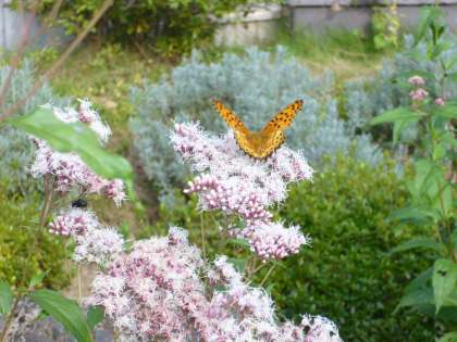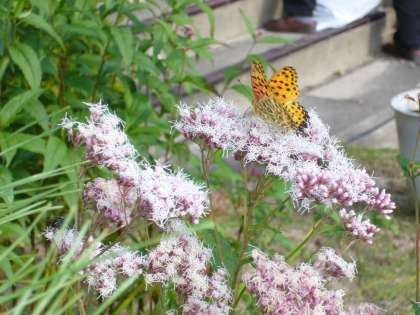 フジバカマにアサギマダラのほかにツマグロヒョウモンも来ていました。見ての通り「ヒョウ」がらなのでその名前がついています。パンジーやスミレにもよく来ます。