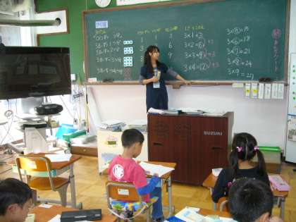 2年生の算数の大きな山である掛け算の九九学習です。〜の段は〜ずつふえていくなど特徴を確かめていました。唱えて言う練習に向かいます。