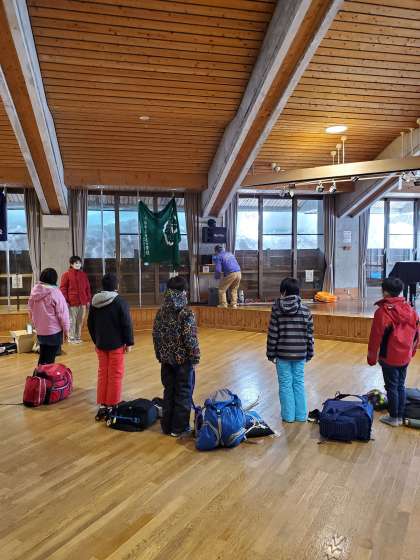 退所式が始まりました。楽しかった花背山の家での2日間も終わりに近づいてきました。山の家の所員のみなさん、お世話になりました。