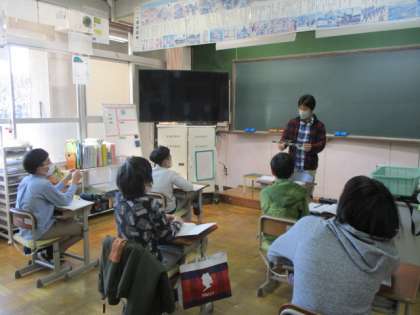 6年生は,昨日まで花背山の家へ宿泊学習に行っていたので,今日は4校時授業でした。4校時は,理科でてこのはたらきの学習でした。実験用てこを使って,左右のうでがつり合う時のきまりは何なのかを考えていました。
