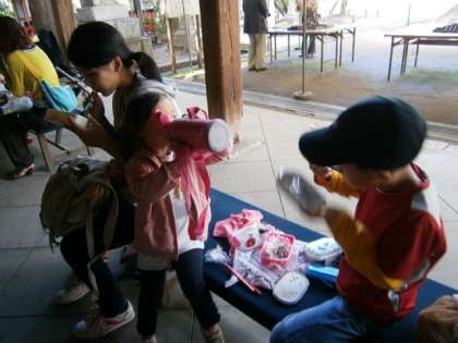 昼食を北野天満宮の書初め展をしているところで食べました。学問の神様です。賢く賢く〜。