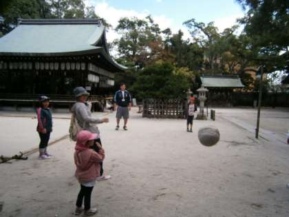 白峯神宮では、蹴鞠体験をさせていただきました。