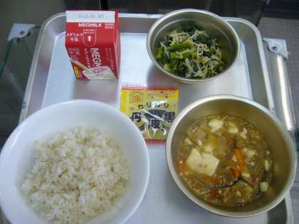 麦ごはん 牛乳 五目どうふ ほうれん草ともやしのいためナムル 黒大豆