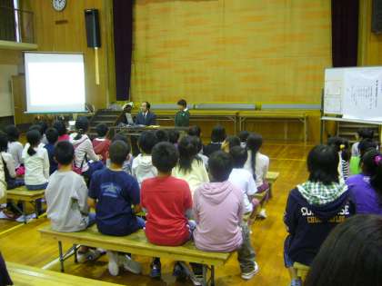 感謝の集いでは、学習して考えたことをまとめて発表しました。交流校も参加してお互いのファームについての交流をしました。