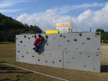 フリークライミング体験チャレンジです。結構むずかしいです。