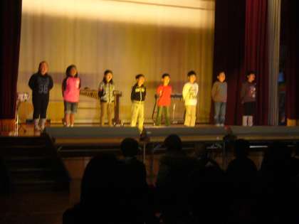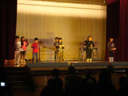 「世界中の子どもたちが」手話も取り入れての歌でした。「森の探検隊」の合奏。「あの青い空のように」を披露しました。