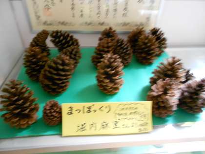 地域の方に大きなまつぼっくりをいただきました。工作の材料としてしっかりしたものばかりです。黒松アカマツという品種ではないのが大きさから分かります。