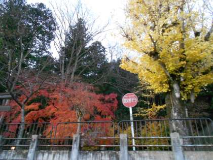 少し葉ガ落ちていますが、きれいな紅葉です。児童は葉っぱを持ち帰っています。