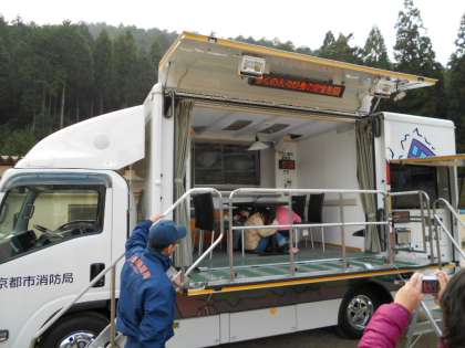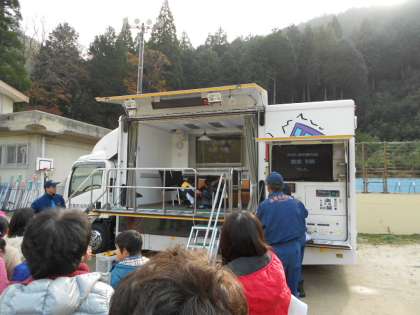 地震体験をしました。実際に地震が起きたとき、速報を聞いたときの対応のしかたを考えました。