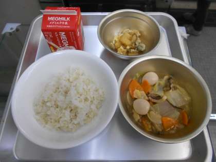 麦ごはん 牛乳 たらのこはくあげ 八宝菜