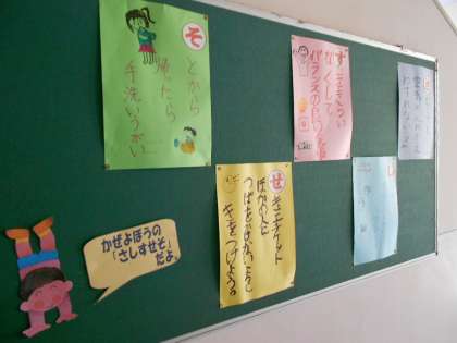 かぜのよぼう「さしすせそ」として掲示しています。児童は歯みがきも含めてよく実行しています。