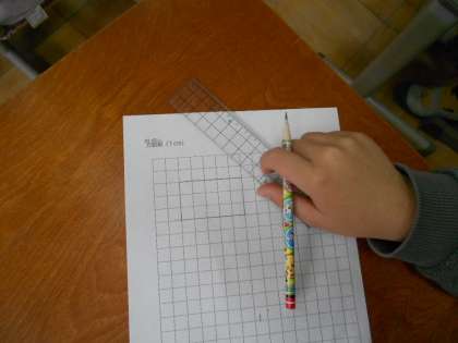 方眼紙を利用して、直角、長さの決まっている形を描いていきました。