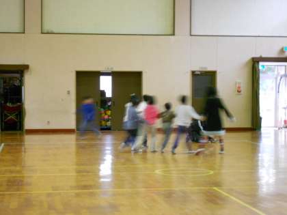 手つなぎおにを楽しんでいます。異学年で仲良く。