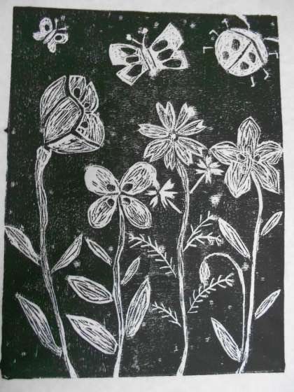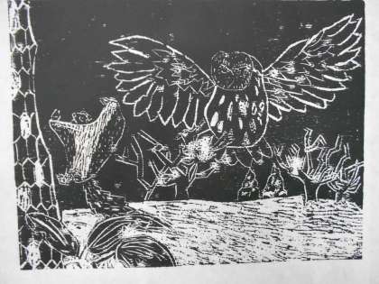 木版画の味を出してしっかり下地ができています。これから、色をつけていくそうです。どんな作品になるか楽しみです。