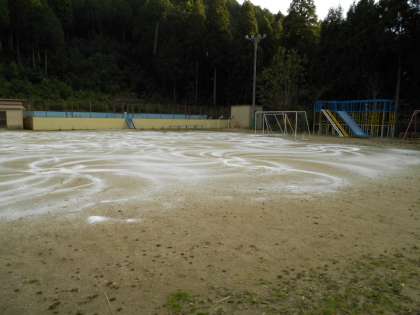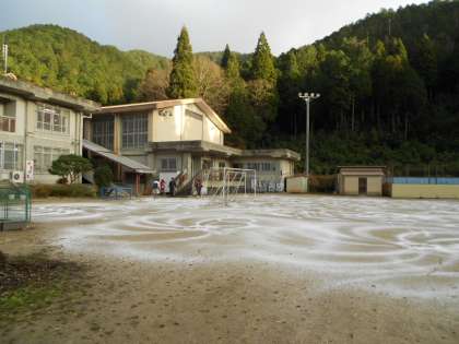時折、時雨が小雪へと変化する寒い日でした。凍結防止剤散布しました。
