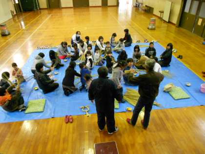 地域の方々にお世話になり、しめなわつくりを指導していただきました。