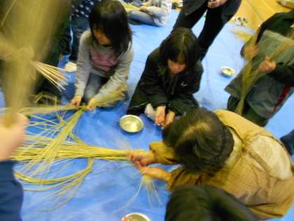 縄にしていくのは、慣れた手つきで見本を見せていただきますが、なかなかそうはいきません。