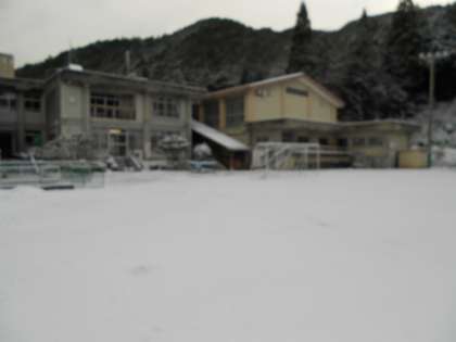 冬休みのチャレンジ学習初日、雪が積もりました。