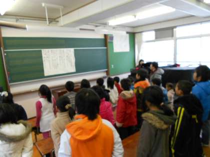 音楽集会では、全校で、「世界中の子どもたちが」を歌いました。産業大学のオーケストラと一緒に歌う予定です。知っている児童も多く、しっかり声を出せていました。
