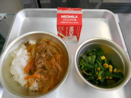 麦ごはん 牛乳 ハッシュドビーフ ほうれん草のソティ