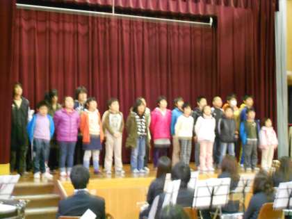 交響楽団の方々に、児童の歌を披露しました。「さんぽ」「ビリーブ」などです。たくさんの拍手をいただきました。