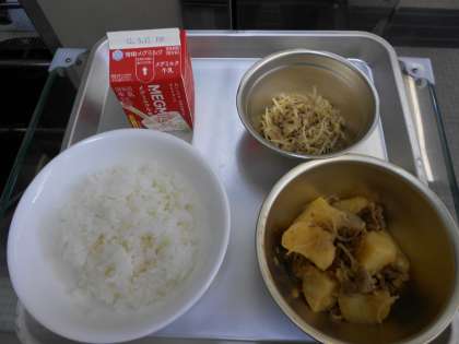 麦ごはん 牛乳 肉じゃが もやしのごまいため