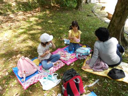 楽しいお弁当の時間です。しっかり食べて、楽しくお話もできました。