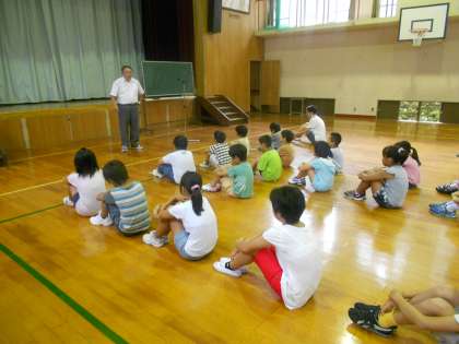 海の家のがんばり・運動会に向けてがんばっていこうという話の中で5,6年生がよい手本となっていることも話されました。