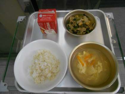 玄米ごはん 牛乳 さばのしょうが煮 三度豆のごま煮 みそ汁